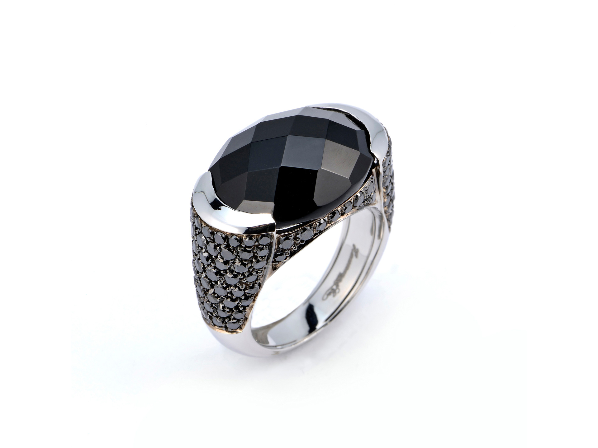 Ring in white gold with central multifaceted onix ( ct. 8 ) and black diamond ( ct. 1.08 ) from Hausmann & Co. Cinque Terre Collection. Hand made in Italy.