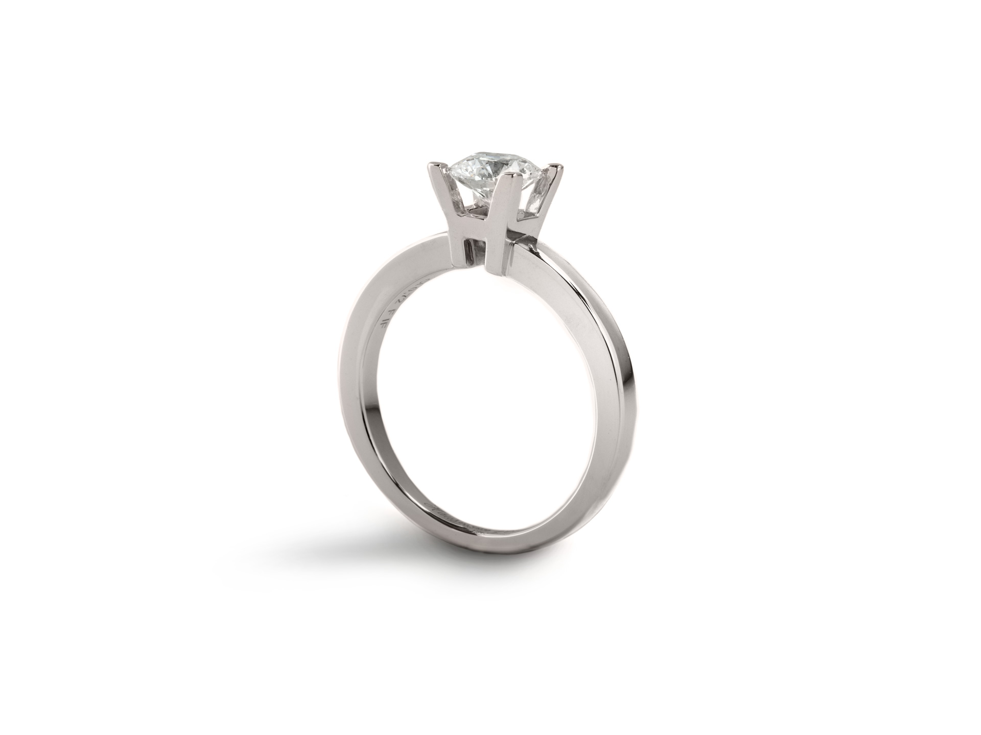 Modello "Élevé". Anello in oro bianco con diamante solitario. Pavé di diamanti su montatura laterale. Sono disponibili molteplici combinazioni di caratura, purezza, colore e taglio della pietra.