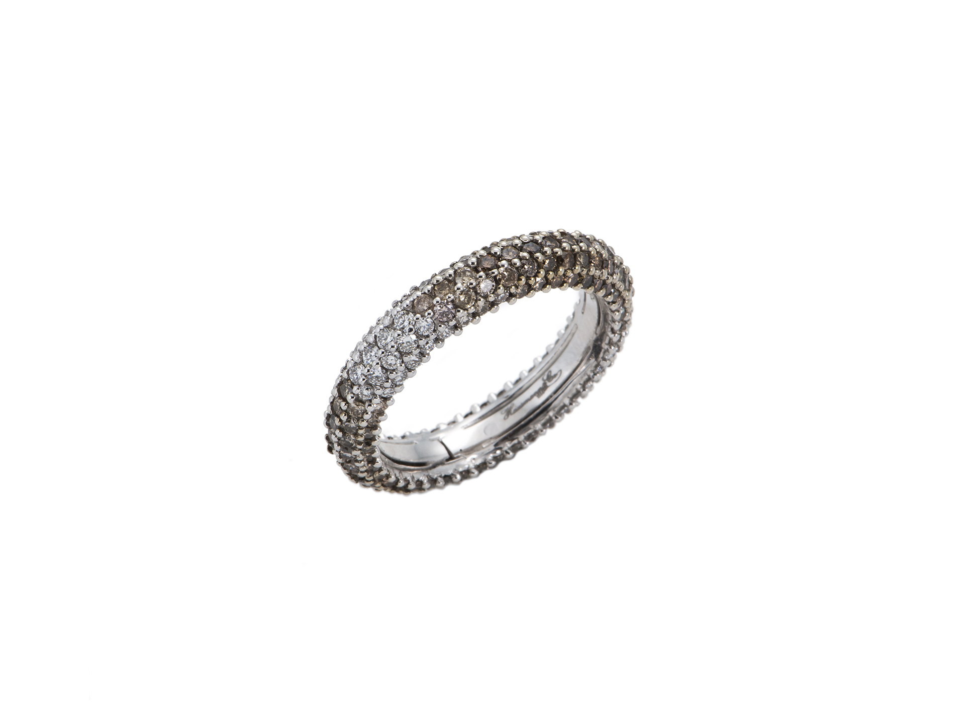 Anello veretta in oro bianco con diamanti taglio brillante (ct. 0,58) e zaffiri rosa (ct. 1,89) con motivo a sfumatura.