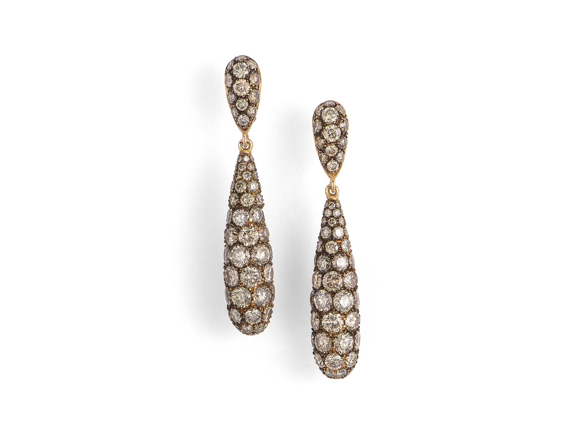 Orecchini a goccia in oro rosa con diamanti brown taglio brillante (ct.10,5).