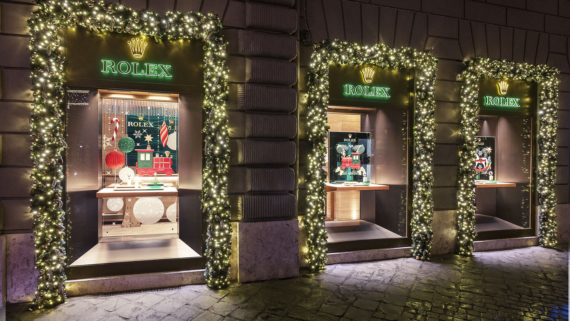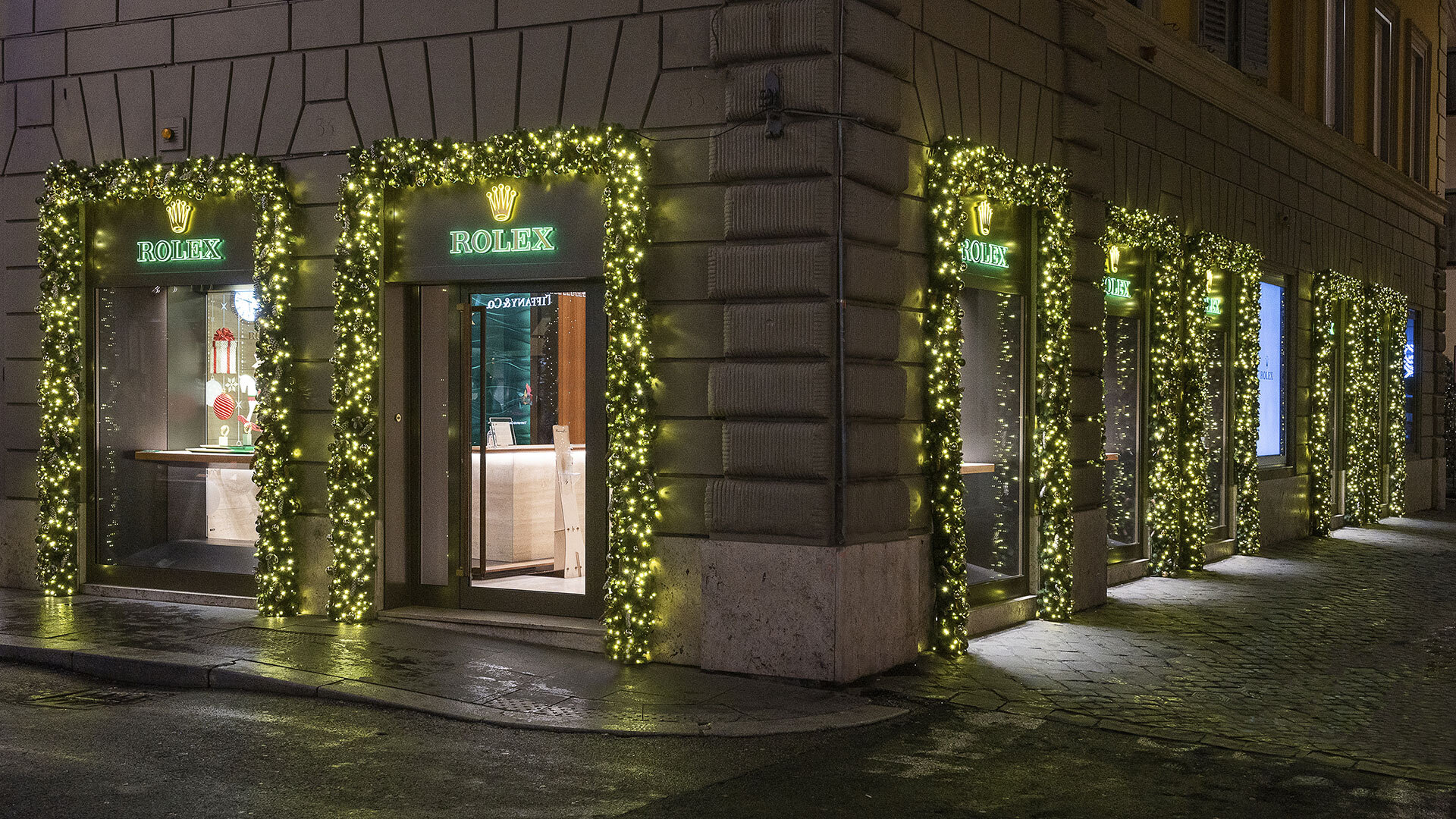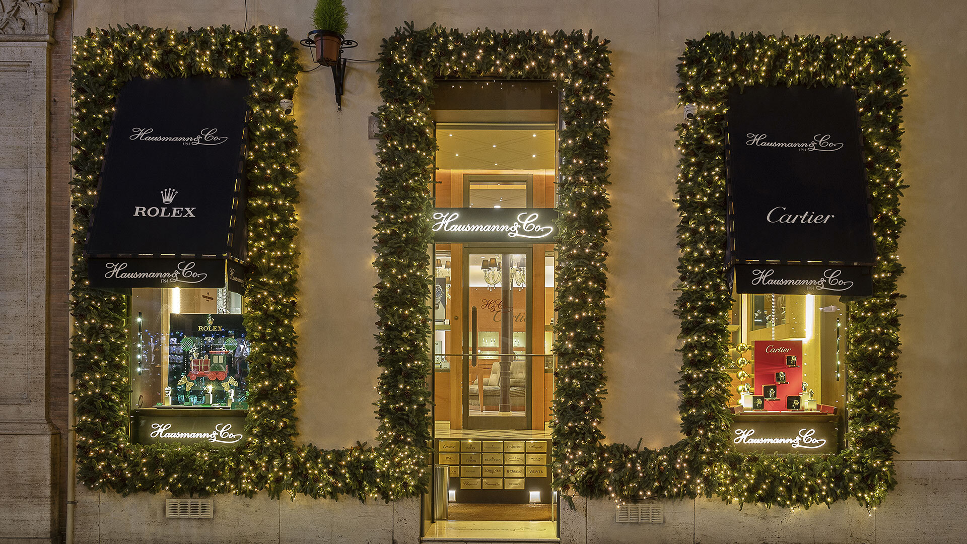 I decori natalizi delle vetrine delle Boutique Hausmann & Co. illuminano di luce il centro della Città Eterna, rendendo le vie più prestigiose del salotto romano ancora più scintillanti e preziose.