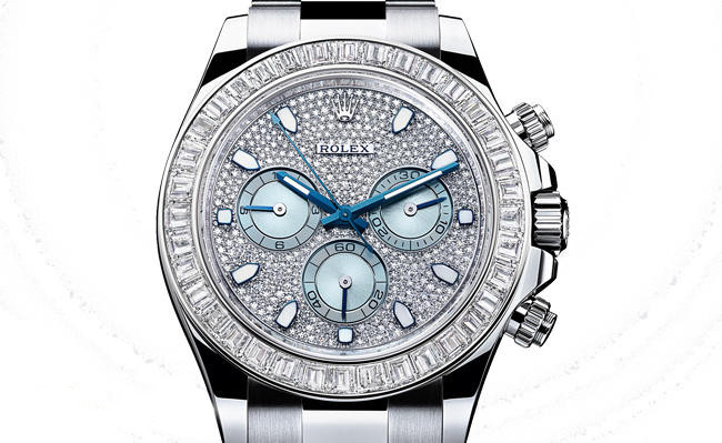 E’ del 2013 l’applicazione della lunetta in ceramica anche al primo Daytona in platino, battezzato con referenza 116506, con il quale Rolex festeggia il 50° anniversario della nascita del modello: l’inconsueto, ma molto elegante, color nocciola della lunetta esalta il quadrante color ghiaccio, caratteristica inconfondibile degli orologi in platino della casa ginevrina. Effetto ancor più lucente sulla variante con lunetta preziosa, in diamanti baguette ed eventuale quadrante pavé, presentato l’anno successivo.